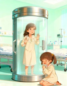 爸爸就让妈妈学学怎么爱干净,把妈妈推进了他医院的消毒舱。